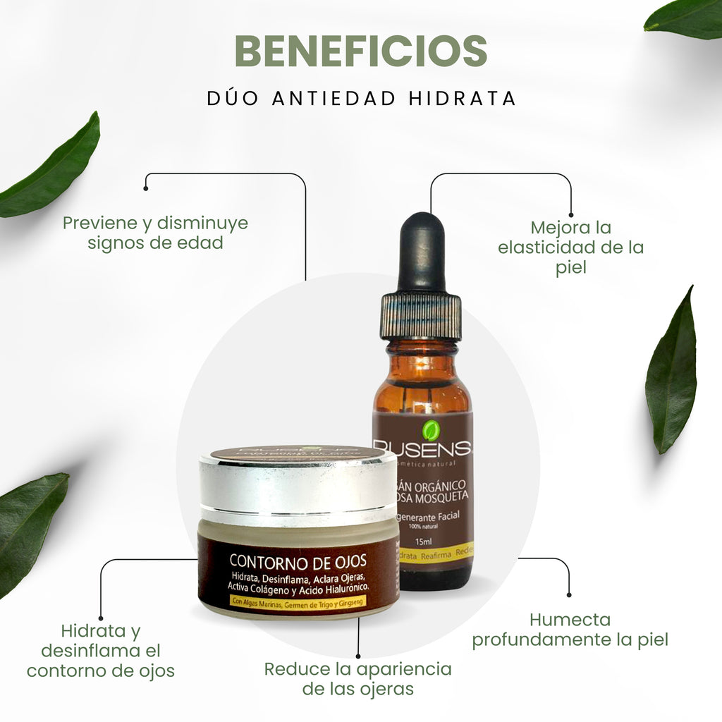 Este dúo esta especializado principalmente para piel deshidratada o seca y es ideal para comenzar a prevenir y disminuir los signos de la edad en rostro y ojos.